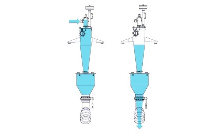 Gli stessi sistemi possono essere equipaggiati su separatori ciclonici che garantiscono filtrazione anche con potenze di aspirazione maggiori fino a 810m³/h.