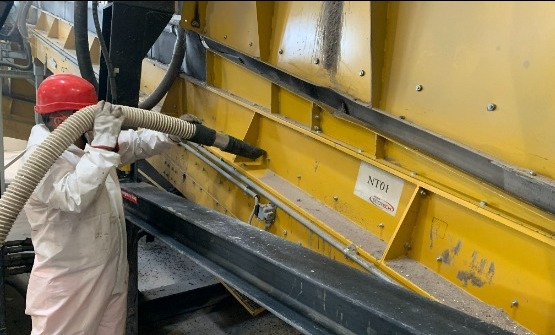 Las soluciones de vacío de Delfin permiten una fácil limpieza de las zonas y el mantenimiento de las astilladoras, recuperando de los residuos de astillado resultantes del corte y la manipulación mecánica.